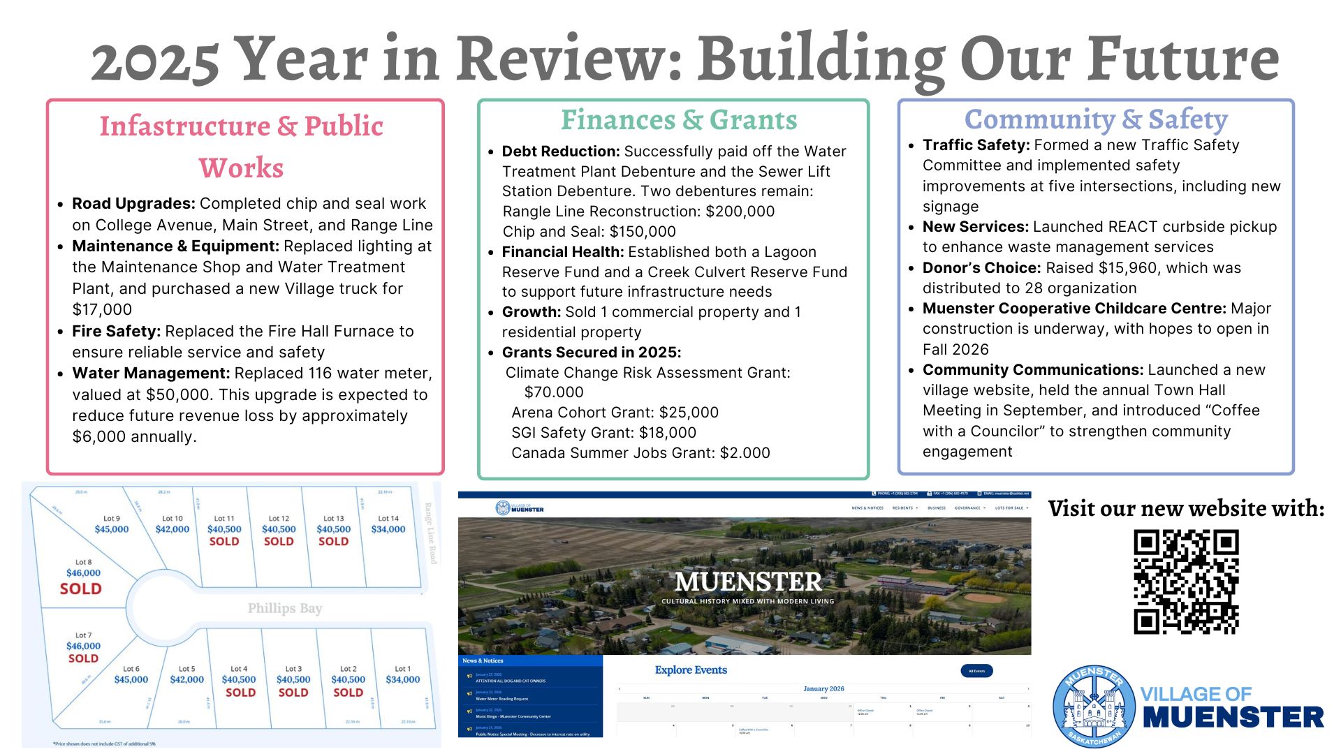 News & Notices All News & Notices Latest Public Notices Feb 4, 2026 2025 Annual Notice to Consumers- Drinking Water Quality and Compliance Jan 21, 2026 Public Notice Special Meeting - Decrease to interest rate on utility arrears. Jan 5, 2026 Public Notice - Regular Council Meeting Including Annual Rates & Fees Meeting Latest Newsletters December 2025 Newsletter Newsletter - March 2025 Newsletter - December 2024 2025 Year in Review: Building Our Future News Posted on February 4, 2026