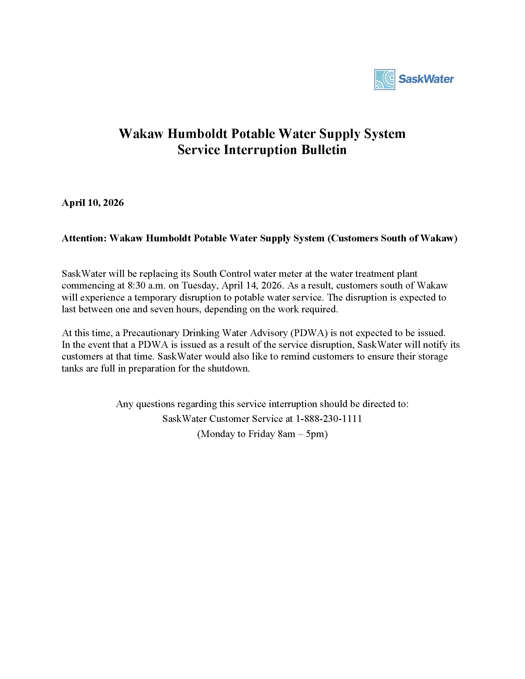 News & Notices All News & Notices Latest Public Notices Feb 23, 2026 2026 Assessment Roll Open for Inspection Feb 4, 2026 2025 Annual Notice to Consumers- Drinking Water Quality and Compliance Jan 21, 2026 Public Notice Special Meeting - Decrease to interest rate on utility arrears. Latest Newsletters December 2025 Newsletter Newsletter - March 2025 Newsletter - December 2024 Attention: SaskWater Public Notice News Posted on April 14, 2026