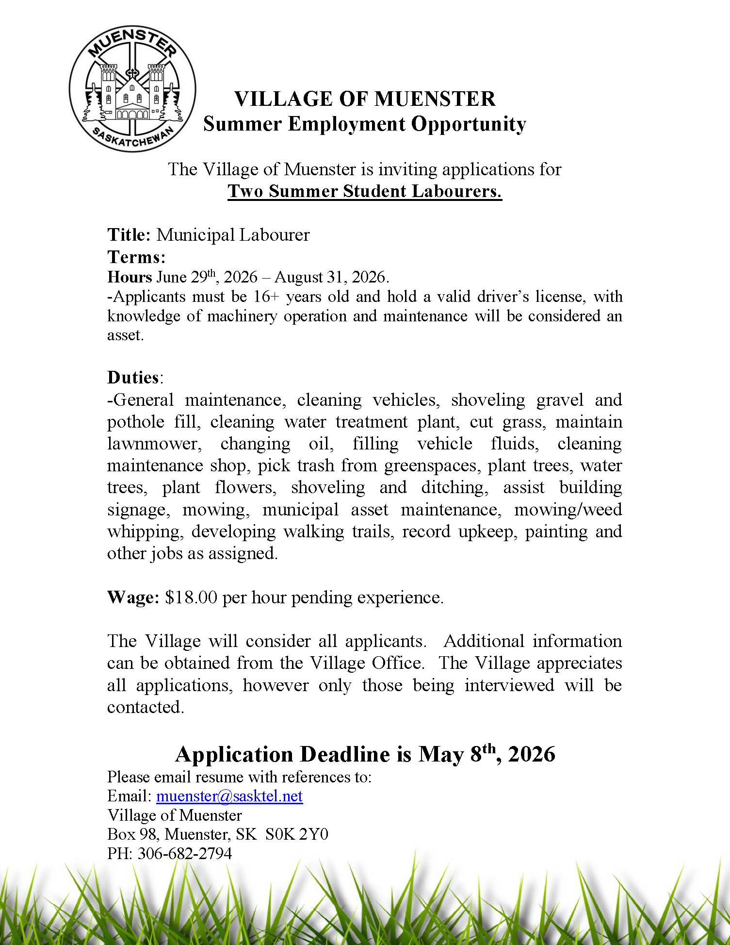 Job Opportunity: Summer Student Labourers